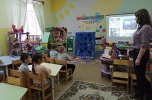 Сегодня с воспитанниками старшей – подготовительной группы была проведена встреча и.о. начальника Буинского отделения профилактики ТУ г. Казани ГБУ «Безопасность дорожного движения» Мурзаковой С.М. Дети закрепили знания правил дорожного движения, вспомнили требования безопасного поведения в транспорте и на улицах города, рассказали о необходимости иметь на одежде светоотражающие элементы. С большим удовольствием воспитанники соревновались в сборе дорожных знаков из пазлов. В завершении встречи с ребятами, Сириня Масхудовна подарила им игры, свотоотражатели и книги.