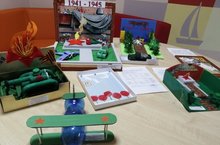 В рамках подготовки к празднованию 75 -летия Великой Победы, воспитанники вместе с родителями изготовили поделки из бросового материала на темы: "Великая Победа!", "Военная техника", "Панно", "Парк Победы".