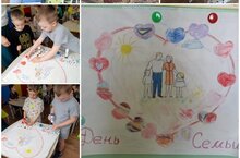 15 мая- Международный день семьи. Семья- это крепкая опора каждого человека. Тёплые отношения между близкими людьми, взаимопонимание, поддержка друг друга дают нам силы преодолеть все трудности.Это вечные ценности, которые останутся неизменными на все времена. В первой младшей группе утро началось с акции " Что для меня семья?". Каждый лепесток ромашки с высказываниями о семье отражает понимание смысла семьи, её значимости в жизни каждого человека.