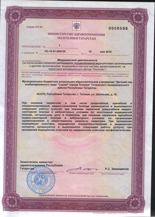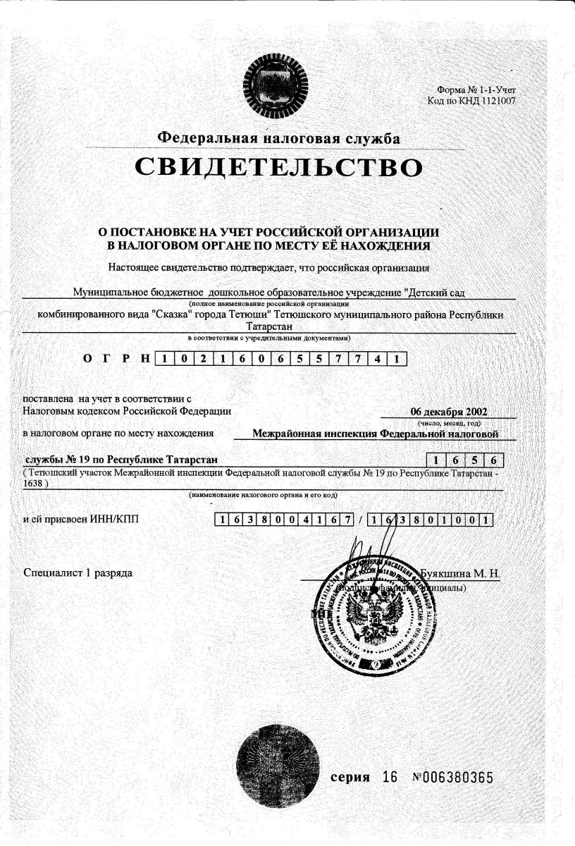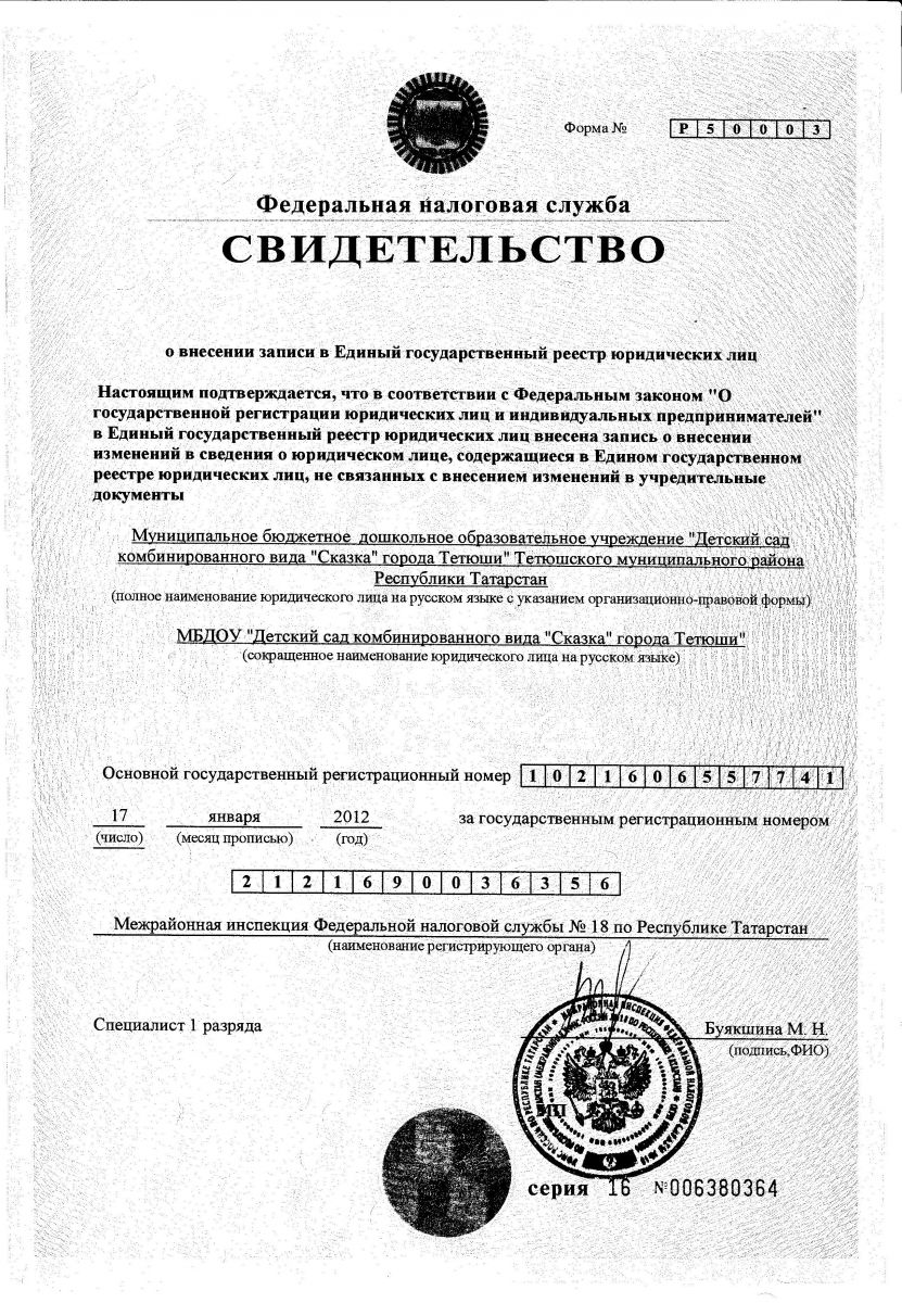 | Короткое название: | МБДОУ «Детский сад комбинированного вида «Сказка» города Тетюши» Тетюшского муниципального района РТ |
