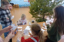 Во время зимних каникул продолжаются занятия в кружках внеурочной деятельности. Так сегодня дети изготавливали простые ёлочные украшения из бумаги в виде ангелочков.