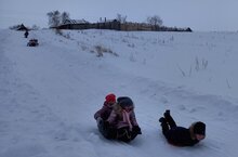 Сегодня мы с детьми катались на горке. Каникулы проходят с пользой для здоровья.