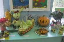 К осеннему празднику ребята совместно с родителями сделали поделки из природного материала, проявив свою фантазию и мастерство. Все участники конкурса получили благодарности.