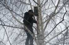 Учащиеся школы радуются весне, зазывают скворцов и готовят для них скворечники.