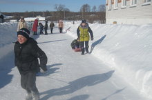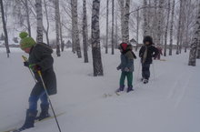 Сегодня учащиеся школы и дошкольники вместе с преподавателем ходили на лыжную прогулку в сельский парк.