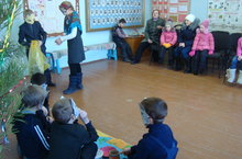Учащиеся начальных классов подготовили и показали для местной детворы сказку Г.Тукая "Козел и Баран".