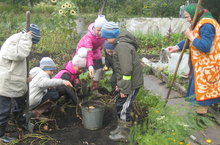 Учащиеся начальных классов посетили труженицу тыла Пьянову А.П. Ребята оказали бабушке посильную помощь: помогли собрать яблоки и сливы, накопать картофеля. Бабушка угостила детей вкусными плодами своего сада.