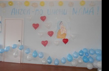 Подготовка к празднику мам. 23.11.2013 Дети принимают активное участие в оформлении праздничной сцены.