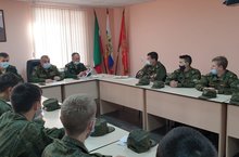 18 сентября в ГБОУ «Тетюшская кадетская школа-интернат» прошла встреча военного комиссара Тетюшского района Гарифуллина Ф.А. с воспитанниками 11 класса (воспитатель Гайнутдинов Р.Р.). Основной целью беседы была популяризация военных профессий. Фанис Альфетович начал свою беседу с разговора о политической обстановке в мире, с гражданского долга каждого призывника, заботы государства о своих защитниках. Кадеты получили информацию о Высших военных заведениях России, было рассказано об условиях поступления в данные учебные заведения.