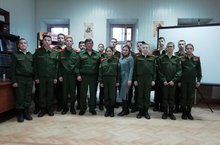 Кадеты 8 класса (воспитатель Вериялов В.Г.) посетили центральную библиотеку, где был проведен урок мужества «Огонь войны души не сжег». Перед ребятами выступила заведующая отделом обслуживания читателей Кириллова Евгения Сергеевна, рассказала о нашем земляке- Герое Советского Союза Елисееве Михаиле Григорьевиче, его подвиге в годы Великой Отечественной войны. Кадеты узнали о судьбе и подвиге Елисеева М.Г., который прославил наш край своим мужеством, смелостью и героизмом. Нашему земляку в Волжске установлен бюст. Рассказ сопровождался показом мультимедийной презентации «Время уходит, с нами остается память».