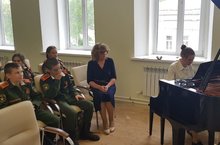 Кадеты 5 и 6 классов (воспитатели Костин С.Г. и Загфаров Н.В.) посетили Детскую школу искусств. Авдонина Надежда Ивановна провела занятие, посвященное песням военных лет, рассказала об истории создания песен и роли песни в ходе Великой Отечественной войны. Воспитанники школы исполняли музыкальные произведения на рояли и фортепиано. Среди выступающих была и воспитанница Кадетской школы – Малькова А. В ее исполнение прозвучали фортепианные пьесы Р.Шумана «Киарина», Вандалла «Водопад». Анастасия продемонстрировала технику фортепианной игры и эмоциональное исполнение. Профессиональные качества музыканта – исполнителя она продемонстрировала в роли аккомпаниатора и игрой в ансамбле. Концерт прошел теплой и душевно, кадеты и воспитатели в восторге от исполнения юных музыкантов