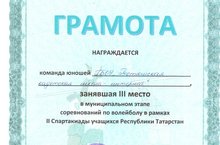 17 января команда Тетюшской кадетской школы-интерната приняла участие в соревнованиях по волейболу в рамках II Спартакиады учащихся РТ. Команда, состоящая из воспитанников 9 класса, показала хорошую коллективную игру и в упорной борьбе заняла 3 общекомандное место..