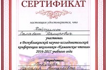 25 апреля на базе МБОУ «Тетюшская средняя общеобразовательная школа №1 имени Героя Советского Союза Ханжина Павла Семеновича» состоялась республиканская научно-практическая конференция школьников «Камаевские чтения-2017», в которой под руководством учителя химии Пироговой Н.Н. принял участие воспитанник 10 класса Хайруллин Салават с проектной работой «Изучая рекламу. Биодобавка к бензину».