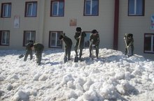 10 апреля кадеты 7 класса продолжили субботник под девизом «Бери больше, кидай дальше». За короткое время снег у северной стороны здания был раскидан.