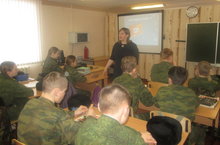 14 марта педагог – организатор МБУ «Центр «Форпост» Тарасова Наталья Николаевна встретилась с воспитанниками 7 класса Тетюшской кадетской школы-интерната и провела игру «Сто к одному» на тему «За Родину свою», посвященную событиям войны 1812 года и Великой Отечественной войны. В ходе игры, которая состояла из пяти частей: «Простая игра», «Двойная игра», «Тройная игра», «Игра наоборот» и «Большая игра», кадеты показали свои знания о полководцах, Маршалах Советского Союза, родах войск, вспомнили виды холодного оружия и песни Великой Отечественной войны.