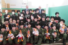 Вторая учебная четверть для кадет завершилась новогодними мероприятиями и многочисленными подарками. Встреча с Дедом Морозом, Снегурочкой и сказочными героями у кадет старших классов состоялась 23 декабря, ау воспитанников 5-7 классов - 24 декабря. В новогодней сказке, рассказанной сказочником Шиндягиным И.,роль Иван-царевича исполнил Корчагин В, царя Гороха - Гордеев Е., Кота – Матвеев В., русалки -Ягудина Л., «Двое изларца» - братья Казаковы А. и К., Кощея - Архипов А., Бабы Ежки- сестренки Багаутдиновы А. и К.,Несмеяны – Нургалиева А., Золушки - Кострина С., сестры Золущки - Корсакова Д. и Малькова А. Роли Снегурочки и Деда Морозаисполнили Малкина А. и Шарло Р.