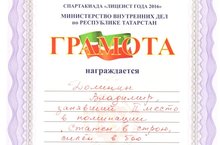 Поздравляем кадета 11 класса Долинина В., успешно выступившего на Республиканской спартакиаде «Лицеист года - 2016» и получившего Грамоту Министерства внутренних дел по РТ. В номинации «Статен в строю, силен в бою» он занял II место.