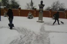 Первые дни нового года удались снежными, но около памятника Владимиру Аверкиевичу Хапаеву чистая от снега площадка. В течение каникул организовано дежурство кадет по уборке территории около памятника.