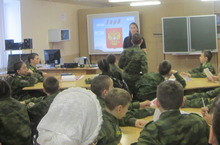 5 декабря в 10 классе состоялся классный час, посвященный Дню Героев Отечества. На классный час были приглашены пятиклассники. В ходе подготовки классного часа старшеклассники под руководством воспитателя Меньшова А.П. собрали материал, проанализировав его, решили создать свой фильм, повествующий о Героях РФ. В ходе презентации фильма, старшеклассники комментировали слайды, рассказывающие о Героях России – это Лебедь А.В., Бурнаев С.А., Шелохвостов И.Ю., Гуров И.В., Уженцев С.В., Долонин В., Кокинаев Ш. Ж. , Шектаев Д.А., Чуркин М. К. В ходе просмотра документального фильма о боях у высоты «3234» кадеты услышали комментарий заместителя командира 9 роты Ткачева, младшего сержанта Огнева и старшего сержанта 9 роты Кузнецова.