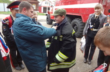 4 октября по приглашению начальника ПЧ-133 Тетюшского района шестиклассники Кадетской школы-интернат посетили, подчиненное ему, подразделение. В этот день ПЧ-133 проводила «День открытых дверей». В ходе экскурсии кадеты ознакомились со спасательными средствами на воде, средствами пожаротушения. Несколько кадет примерили пожарное обмундирование и потренировались в свертывании пожарного рукава. Много познавательного узнали кадеты в ходе экскурсии.