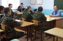 В Кадетской школе-интернат начались занятия по правоведению, которые будут проводить сотрудники отдела МВД РФ по Тетюшскому району. В рамках занятий – криминалистика, уголовное дело, административное правоведение, рукопашный бой и др. Первое занятие провел помощник начальника по работе с личным составом отдела МВД РФ по Тетюшскому району, подполковник внутренней службы Романов Анатолий Петрович.