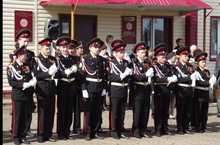Выпускников поздравили: первый директор школы Г.В. Митрофанов, военком Ф.А. Гарифуллин, директор школы А.Н. Филиппов, учителя, родители, кадеты 5 класса.