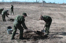 5 класс (воспитатель Костин С.Г.) посадили саженцы лип около родника «Южный».