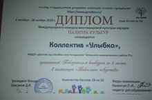 Наши детки получили диплом за 3 место в международном конкурсе многожанровой культуры народов «Палитра культур» в номинации «Вокальное искусство».