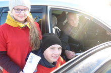 Сегодня ребята из отряда «ФОРПОСТ» в рамках Дня безопасности дорожного движения провели акцию «Соблюдай правила движения». Они вручили памятки водителям и пешеходам.