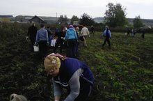 Сегодня учащиеся школы с 5 по 11 класс вместе с учителями и техперсоналом школы убрали картофель с пришкольного участка.