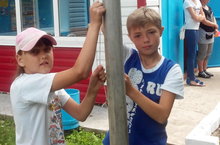 Снова наш день начинается с поднятия флага лагеря. Право поднять флаг предоставлено командирам отрядов.