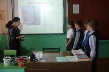 В рамках недели детской книги библиотекарь школы Зубова П.И. 2.04.2015г. провела библиотечный урок в 4 классе их истории возникновения книги «Слов драгоценные клады»