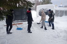 Патриотическое воспитание школьников - одно из приоритетных направлений работы школы. Юнармейцы провели акцию "Снежный десант" по очистке территории памятника от снега.