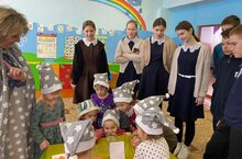 В рамках учебного курса "Психолого-педагогический класс" учащиеся 7 класса посетили занятие - игру "Удивительные фокусы с водой" в детском саду "Улыбка"