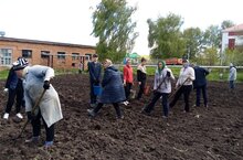 Учащиеся, учителя и работники школы славно потрудились на пришкольном участке.