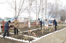 Учащиеся совместно с коллективом школы приводят территорию школы в порядок: убирают засохшую прошлогоднюю траву и листья, а также собирают мусор