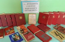 Библиотекарь Абраконова Т.В. в рамках месячника гражданско-патриотического и спортивного воспитания оформила в библиотеке книжную выставку "...И память о войне нам книга оставляет".