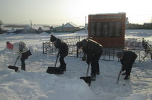 Учащиеся 6 класса под руководством педагога-организатора Абраконовой Т.В. помогли с уборкой территории дома от снега жителю села Дружинину В.