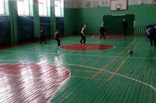 Учащиеся школы и выпускники собрались в спортзале, чтобы с пользой для здоровья провести время и поиграть в волейбол.