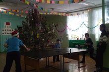 Во время зимних каникул учащиеся школы совместно с учителем Ивановым Н.Д. и Абраконовым С.С. собрались в школе, чтобы поиграть в настольный теннис.