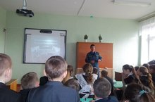 В рамках республиканской акции «108 минут вместе с Юрием Гагариным!» с учащимися школы были проведены классные часы, беседы. Учитель физики Иванов Н.Д. рассказал о первом полете Юрия Гагарина в космос. -