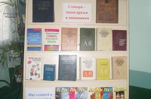 В Пушкинском зале школы библиотекарем и учителями русского языка организована выставка "Словари наши друзья и помощники" для учащихся школы. На данной выставке представлены различные виды словарей и энциклопедий.
