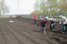 Продолжаются работы на пришкольном участке. Сегодня посадили картошку.
