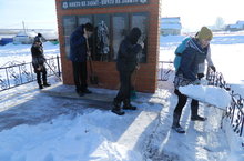 Педагог-огранизатор Абраконова Т.В. и учащиеся 8 класса убрали территорию Памятника павшим в Великой Отечественной войне от снега.