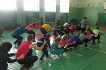 Сегодня день рождения нашей школы. Отметить этот день мы решили по-спортивному. Учащиеся, родители и учителя собрались в спортивном зале. Учитель физической культуры разделил всех собравшихся на три команды. Каждая команда придумала себе название: "Олимпийцы", "Рубин", "Телепузики". Со спортивным азартом проходил этап за этапом. От учащихся старались не отставать ни родители, ни учителя. В итоге победила команда "Телепузики". Поздравляем!