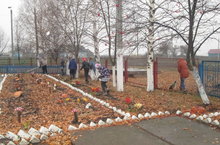 Учащиеся и учителя после уроков вышли на очередной субботник. Убраны опавшие листья на территории школы.