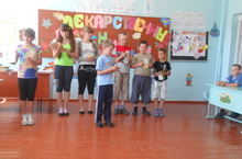 Ребята проявили своё творчество, смекалку в игровой программе "Весёлые конкурсы". Конкурсы "Пантомима", "Пойми меня", "Тарелка с фруктами", "Надень косынку соседу", "Кот на рыбалке" и другие очень понравились ребятам. Самым интересным конкурсом для ребят стал конкурс "Весёлые художники". Участники команд с закрытыми глазами нарисовали корову. Получилось забавно. Завершилось мероприятие дискотекой.