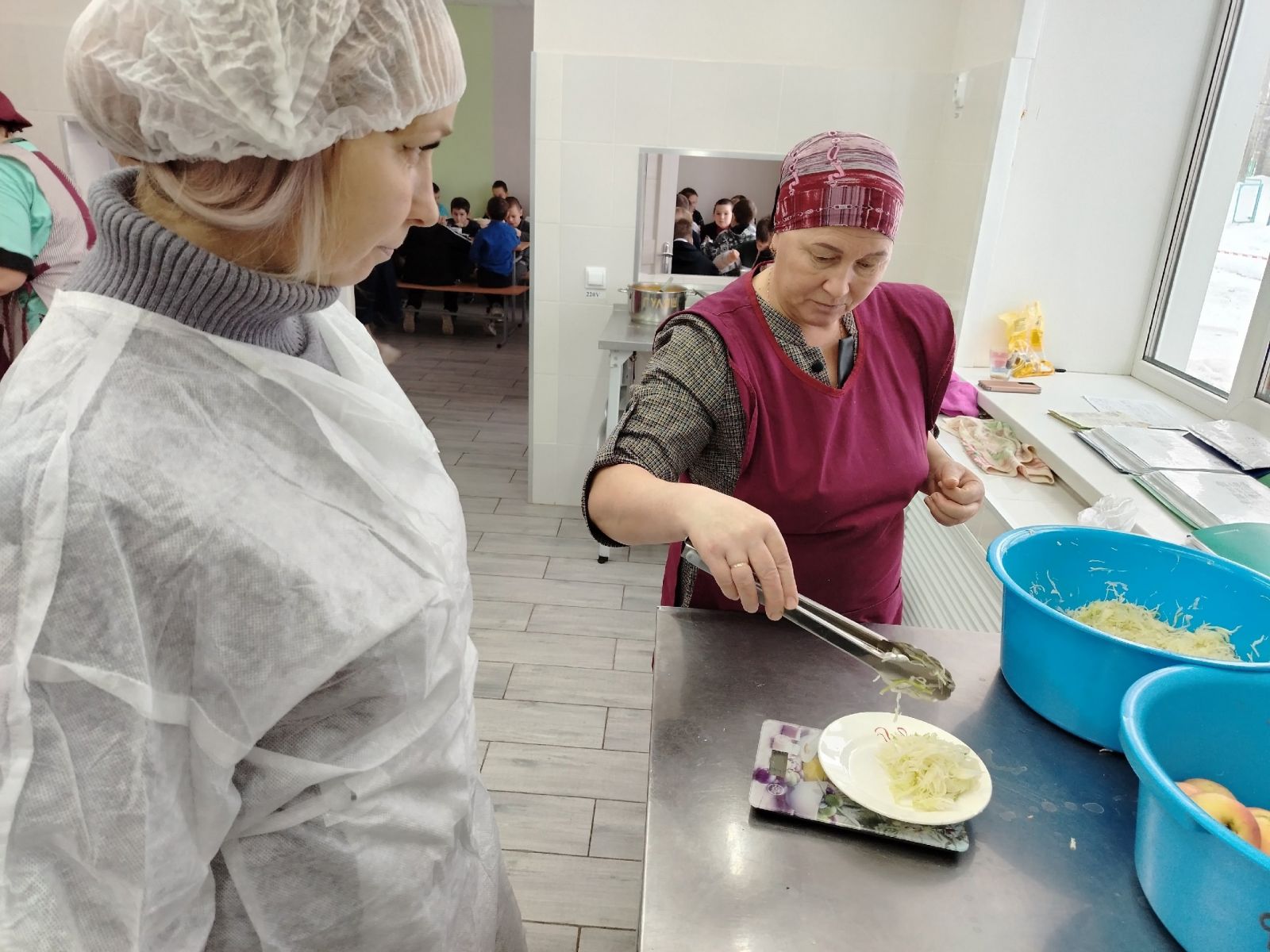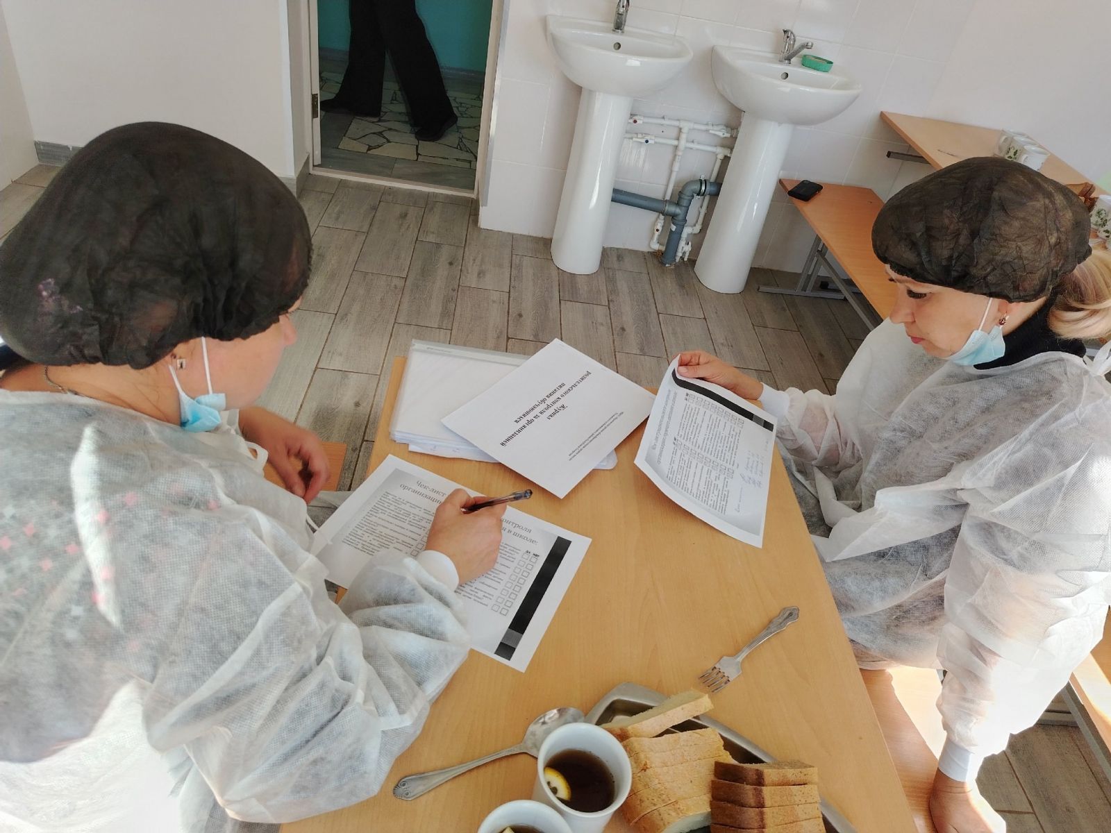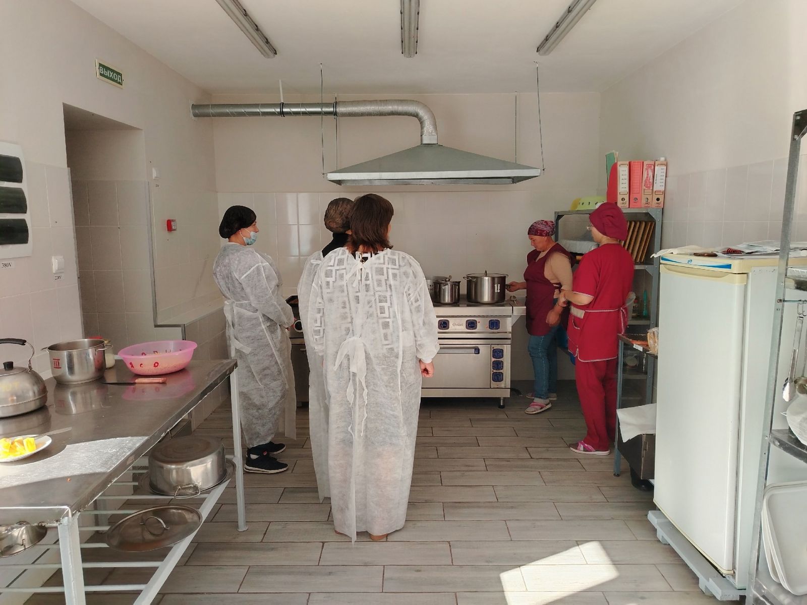 Фото членов комиссии в школьной столовой при проверке