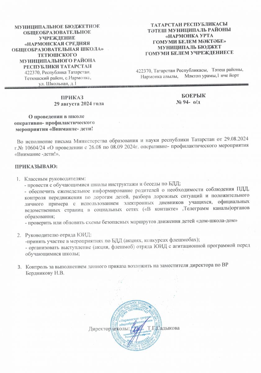 Муниципальное бюджетное общеобразовательное учреждение «Нармонская средняя общеобразовательная школа» Тетюшского муниципального района РТ