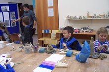 15 января в Детской школе искусств, преподаватель керамики Гафаров Н.В. для учащихся 3-4 классов художественного отделения в рамках Года родных языков и народного единства оформил тематическую выставку на тему: «Художники - керамисты Татарстана. Творчество Андрея Махинина». Ребята увидели особенные, авторские стили мастеров, подробно познакомились с творчеством Андрея Махинина. Узнали о его преподавательской деятельности на отделении керамики в Казанском университете культуры и искусства. Произведения Андрея Махинина оригинальны, невероятно обаятельны и ни на кого не похожи, это не застывшие фигурки, а живые герои, полные жизни, обладающие своим характером, темпераметром. Глядя на работы А. Махинина кажется, что они готовы оторваться и полететь к воздушным облакам и манящим звездам. Достигается этот эффект благодаря особому литературно-художественному мышлению автора, а также свободному владению техниками керамического мастерства, где всегда остается место эксперименту, поиску, например, введению дополнительных материалов (расписные рамы, декорирование тканями, кожей и др. материалами). Выставка интересна для всех возрастных групп, направлена на расширение кругозора в области художественной керамики.